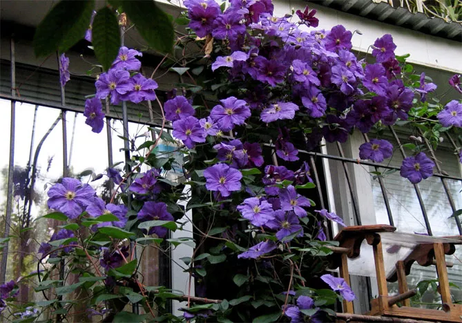 Клематиси на балконі або терасі – відмінна ідея. Вони утворюють щільне сплетіння, чудово покривають перила, стаючи природним парканом від сусідів або ширмою. Чудові квіти всіх розмаїть захоплюють подих, особливо коли їх багато.