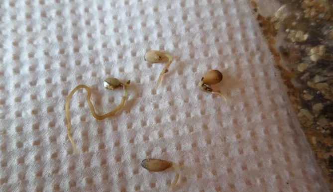 - Видалення «хвостика» та насінного покриву. Дуже акуратно знімають насінний покрив повністю або наполовину. Видалення хвостика необхідне, оскільки його присутність чинить гальмівну дію.