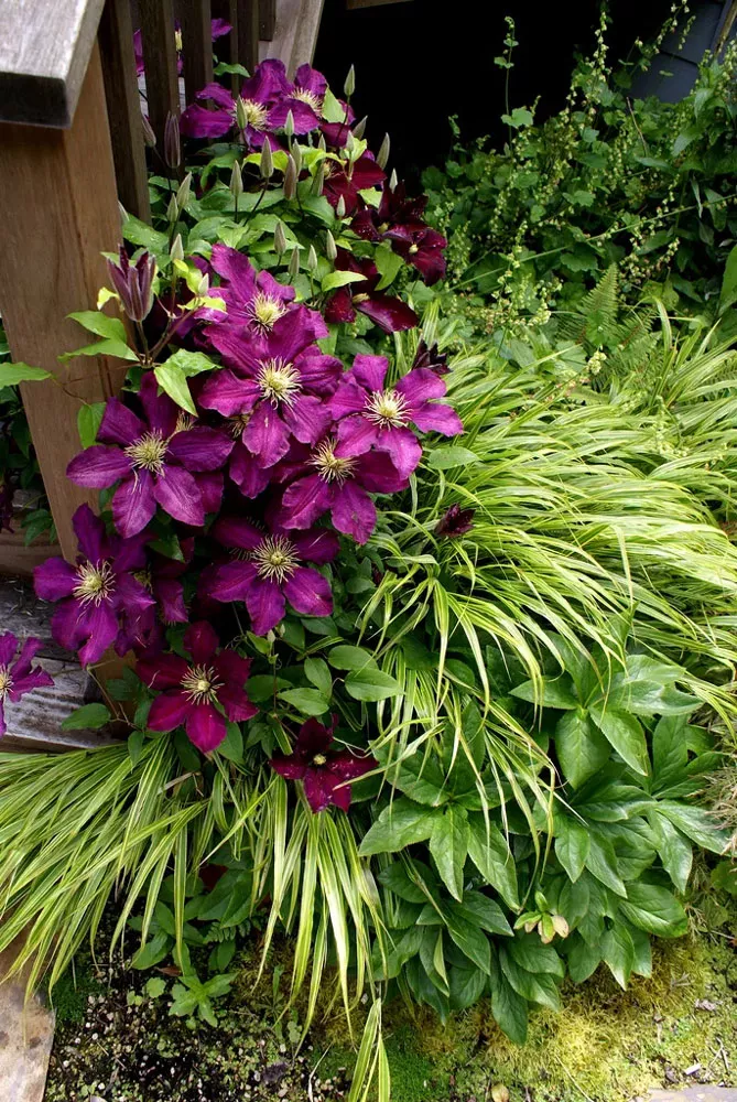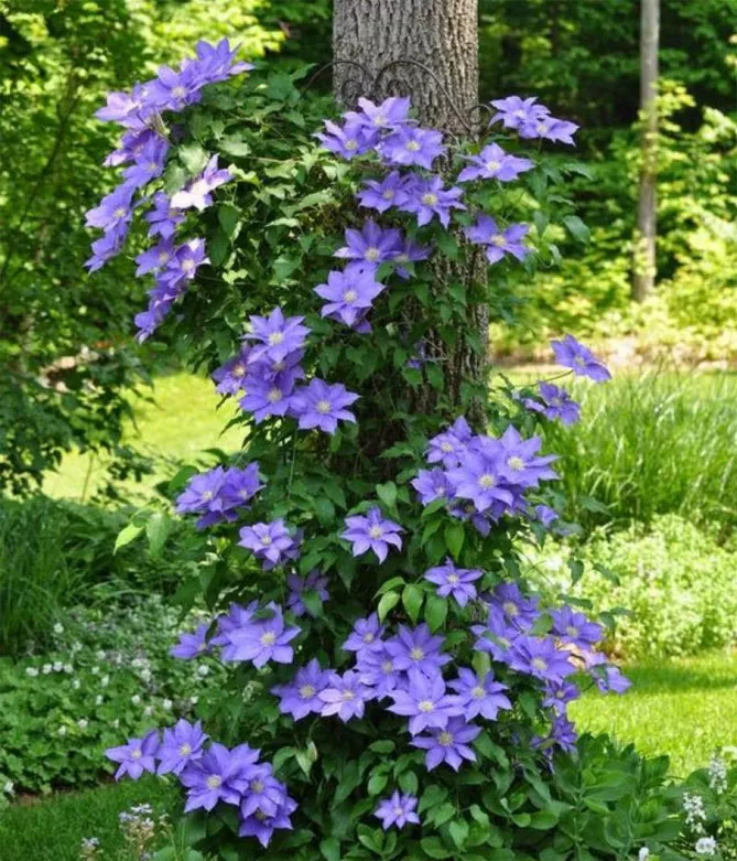 - оскільки ломонос відмінно переносить затінення, його можна посадити під деревами, опорою стануть їхні стовбури або декоративні кущі. Така комбінація представляє дивовижне видовище.