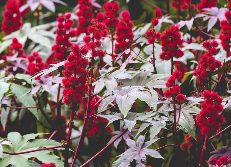 Колись популярна у садах клещевина сьогодні рідко з'являється на клумбах, хоча її декоративні якості давно відомі. Однак рослина дуже отруйна, тому її не варто вирощувати в садах, де гуляють маленькі діти. Ми розповімо, як виростити клещевину – про посадку та догляд у відкритому грунті, покажемо фото цікавих сортів.