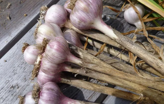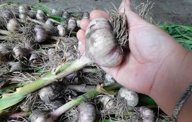 Часник пора прибирати на зберігання, коли головки після викопування покриті 3-5 лусочками. Коли збір урожаю затримується, лусочки розтріскуються, і головки починають відкриватися, урожай гине.