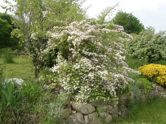 - чубушником вінценосним «Ауреа» з ароматними білими квітками;