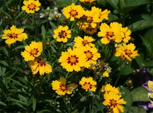 - Кореопсис Драммонда (Coreopsisdrummondii) – однорічна рослина, росте до 50-70 см, має перисті листя. Квіткові кошики жовті з коричневою серединкою. Цвітуть все літо, насіння сіють у відкритий грунт в кінці квітня, в регіонах з холодним кліматом – у другій половині травня. Насіння на розсаду в горщики висівають в березні.