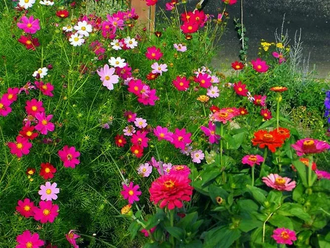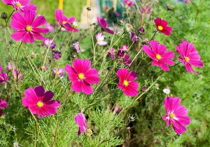 Космеєю можна заповнювати порожній простір між грядками або створювати з них сезонні неформальні живоплоти, що закривають непривабливі частини саду.