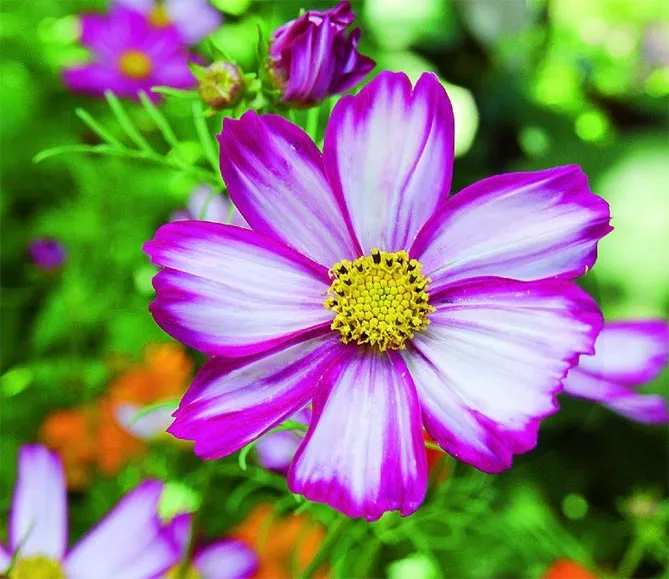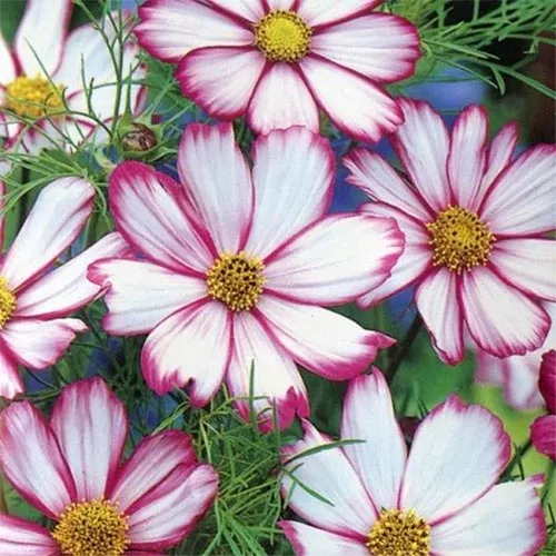 - сорт Пікоті (Picotee) – високорослі космеї з яскравими квітами з темнішою облямівкою по краю пелюсток;