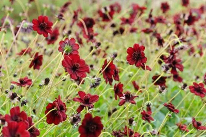 Багаторічна космея криваво-червона (C. atrosanguineus) також звана – шоколадна і чорна, вирізняється кошиками суцвіть шоколадного кольору і запаху діаметром близько 3 см. Рослина виростає до 35 см, слабо розростається, утворює ланцетоподібні листки.