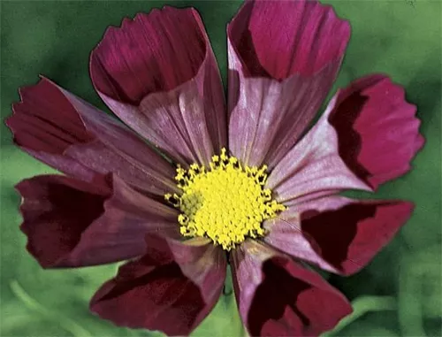 Космеї пишно розцвітають величними, плоскими, відкритими, різнобарвними кошиками. І листя, і квіти є декоративним доповненням літніх, сільських букетів.