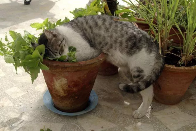 Набагато серйознішими шкідниками можуть бути… коти. Їхня любов до ароматичних квітів досить сильна, щоб переважити будь-які заборони і може призвести до серйозного пошкодження рослин – особливо, якщо котів кілька. Варто не садити котячу м'яту поруч з іншими цінними квітами, які можуть стати випадковою жертвою кошачої залежності.