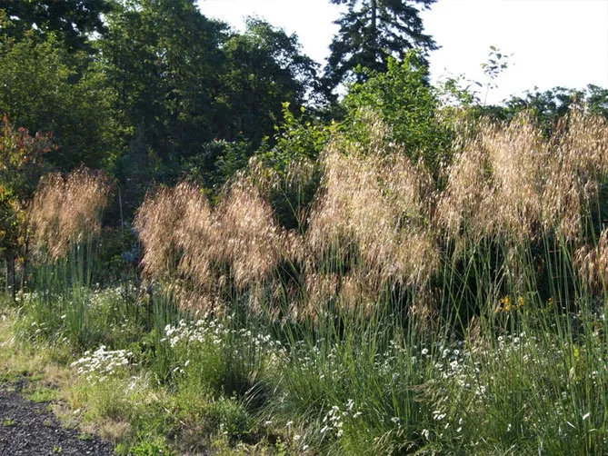 Своїм тремтливим силуетом та автентичним диким виглядом трава надає структуру та об'єм вітряним і посушливим ділянкам саду, висаджена в природних клумбах, сухих альпінаріях, уздовж доріжок, у горщиках.