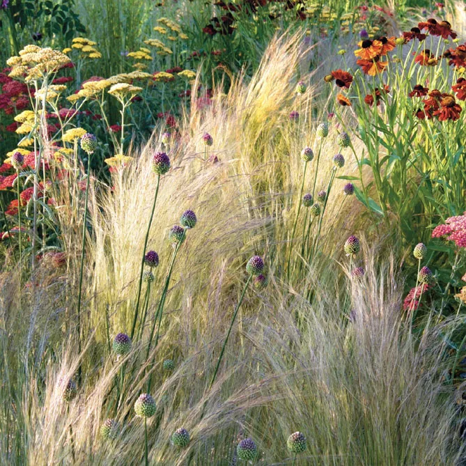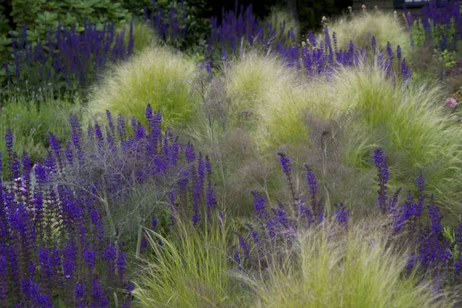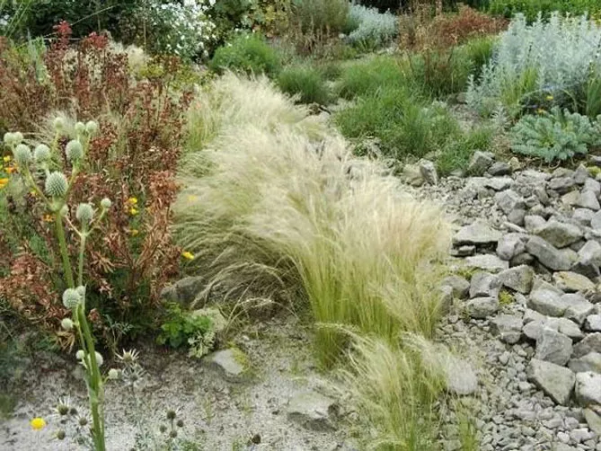 Щоб уникнути монотонності, комбінуйте ковилу з іншими рослинами в саду.