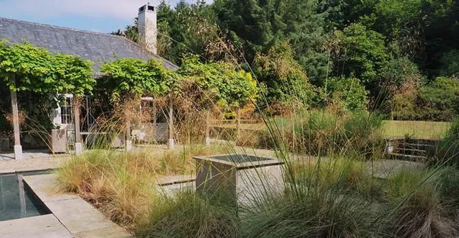Фото. Приклад саду в середземноморському стилі: ковила тончайша, деревій таволголистий, лаванда
