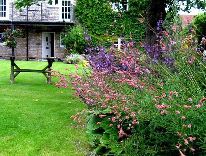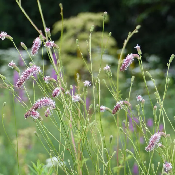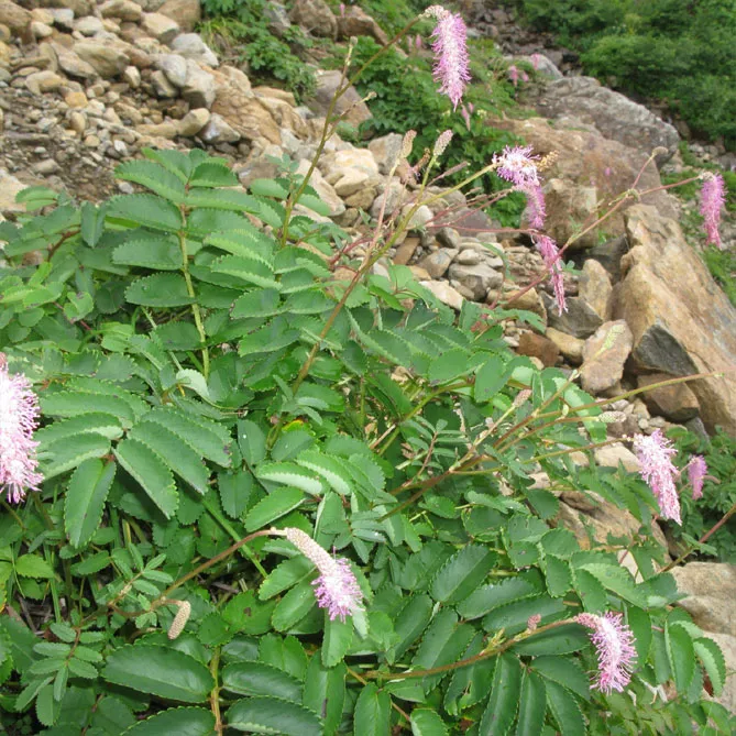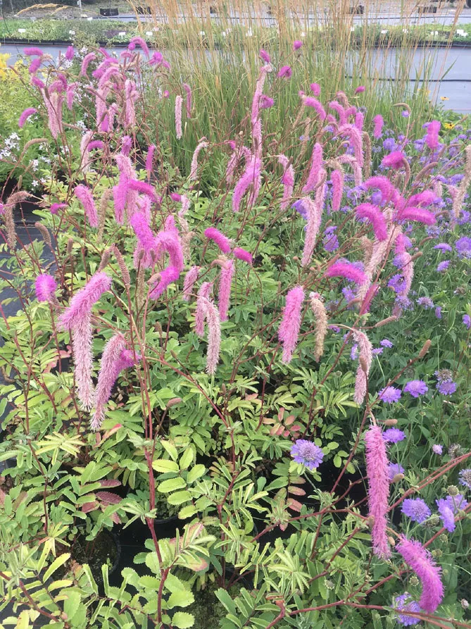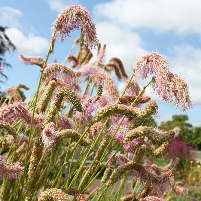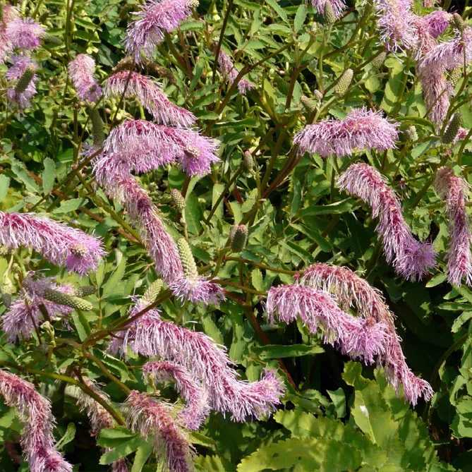 - Sanguisorba obtusa – К. тупа (зі схиленими, рожевими суцвіттями);