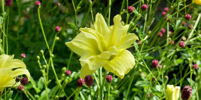 Можна вибрати сорти з рожевими квітами (Sanguisorba obtusa) або з темними (Sanguisorba officinalis ‘Tanna’). Щоб надати клумбі більше інтенсивного кольору та отримати приємний контрастний ефект поєднують легке цвітіння кровохльобки з вражаючими та яскравими квітами лилейників.