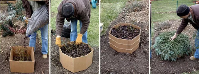 Коли настають холодні дні і підходить до кінця осінь, захист садових рослин від зими, морозу, вітру стає особливо важливим. Особливо при вирощуванні рослин, чутливих до низьких температур. Зібране листя можна використовувати для захисту рослин від морозу. Шар листя захищає ґрунт від замерзання. Листя (крім волоського горіха) розкидають на клумбах або вкривають ними обрані рослини.