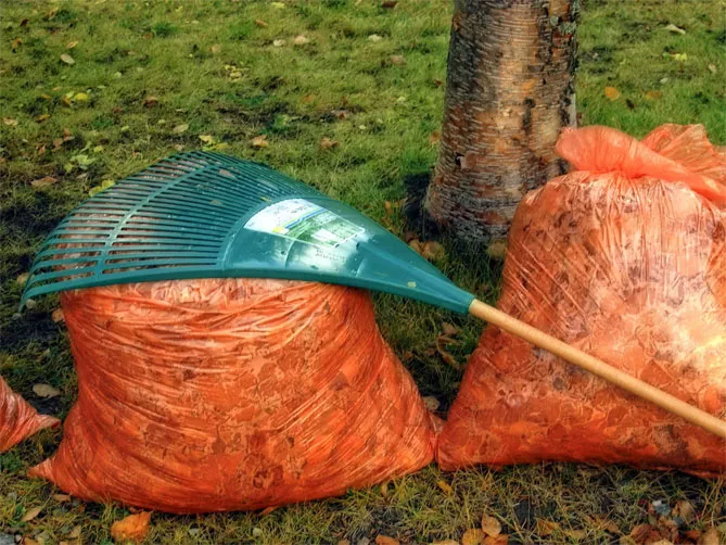 Увага! Не потрібно проводити прибирання одразу після дощу або рано вранці, коли листя вологе. Коли воно висохне – стане важити менше, його легше перевозити, укладати в мішки, компост.