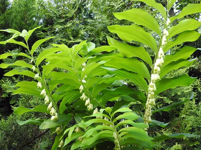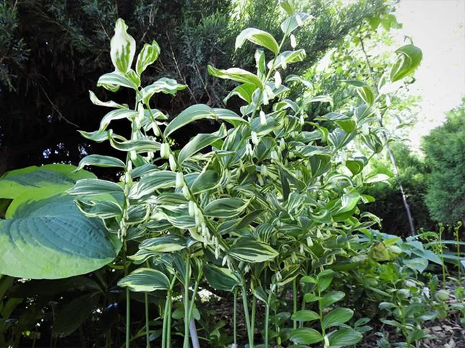 - Polygonatum falcatum «Вариегатум» Variegatum – рослина, що використовується для паркових посадок та тінистих ділянок садів. Характеризується білими декоративними облямівками кінчиків листків та вигнутими серпоподібно-червонувато-коричневими стеблами.