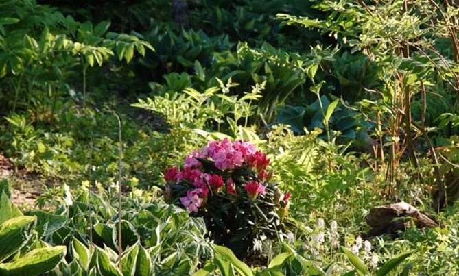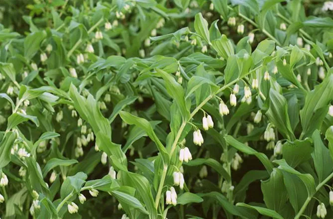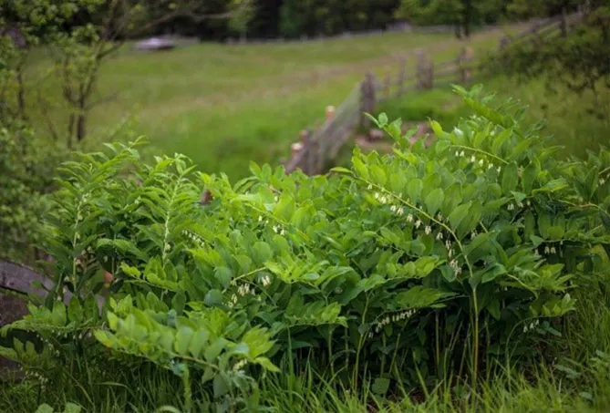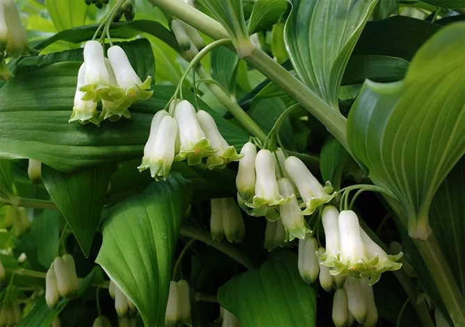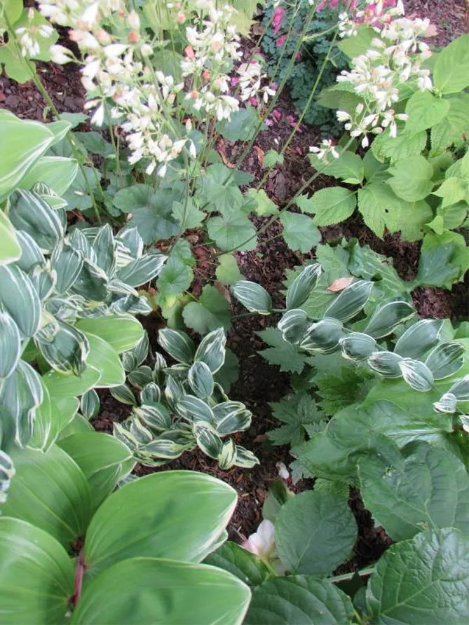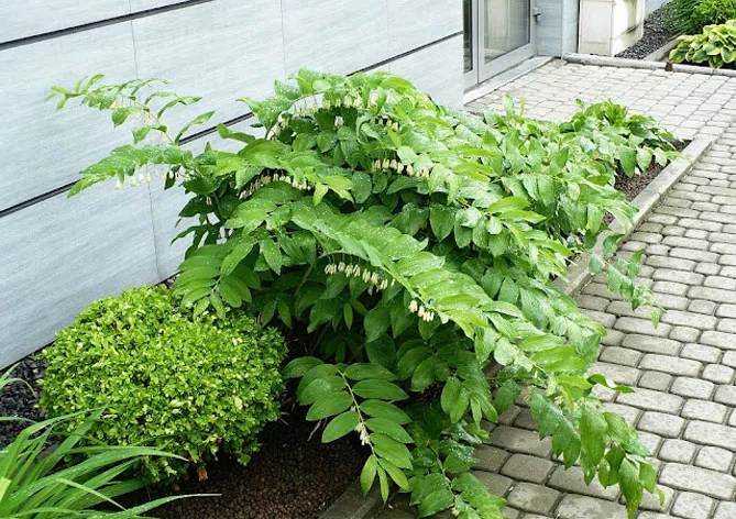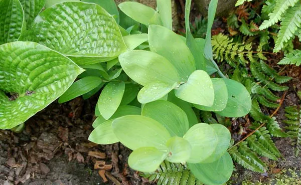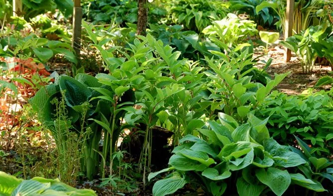 Купена добре росте в темних куточках саду поряд з іншими тіневитривалими рослинами: