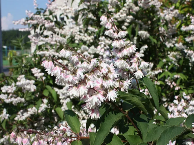 Трохи вищі гібридні сорти, що досягають висоти 1,5-2 м. Якщо в саду багато місця, можна вибрати більш високі різновиди: шорстку або городчасту дейцію.