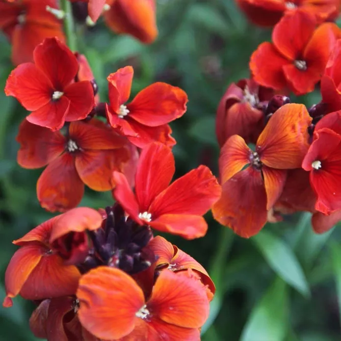- «Беддер Скарлет» Bedder Scarlet – компактний сорт хейрантуса з яскраво-червоними квітками, що гарно виділяються на тлі темно-зеленого листя. Період цвітіння з березня по травень, висота 35 см. Ідеально підходить для створення низького бордюру, композиції в горщику або кашпо.