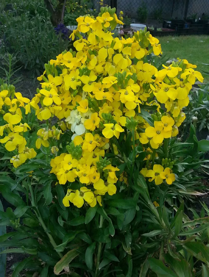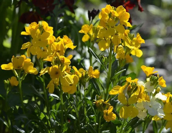 Лакфіоль чудово виглядає в компанії з декоративними чагарниками і весняноквітучими цибулинними рослинами: