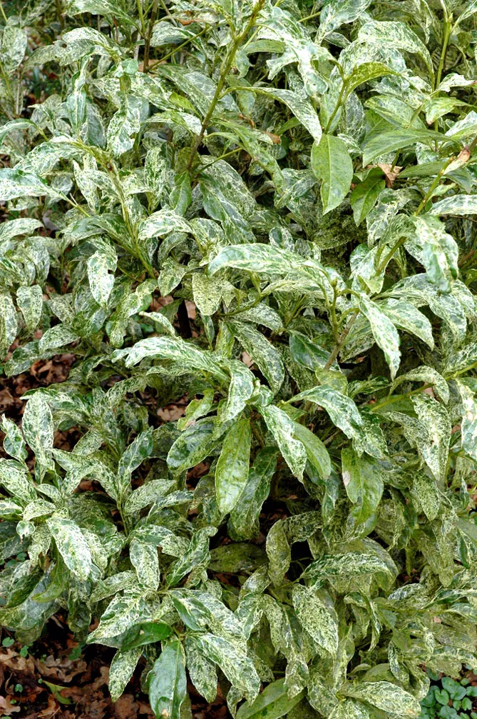 Сорт «Маблед Уайт» (Prunus laurocerasus Marbled White) у висоту досягає 3-4 м, цвіте навесні. Чудова глянсова листва, мармурова з зеленим, білим і кремовим відтінками. Подовжено-овальні листя завдовжки 10 см, завширшки 5 см. Росте повільніше, уникайте експозицій з дуже інтенсивним сонячним випромінюванням, яке може обпекти листя.