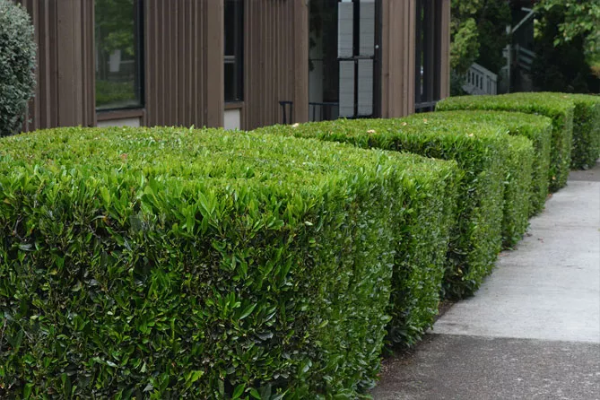 Фото. Жива огорожа з лавровишні в ландшафтному дизайні