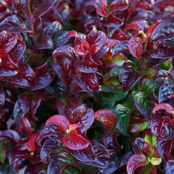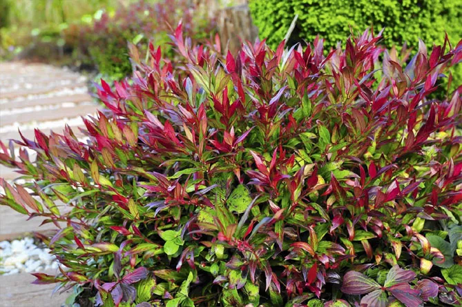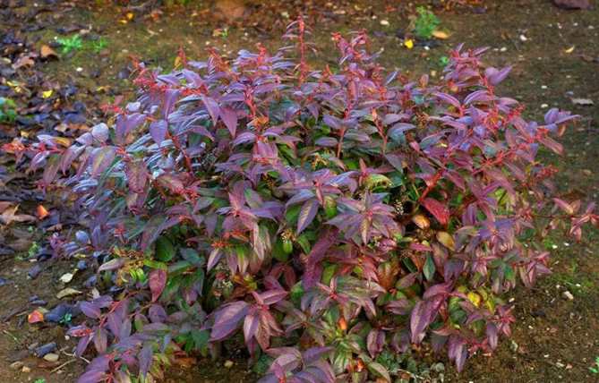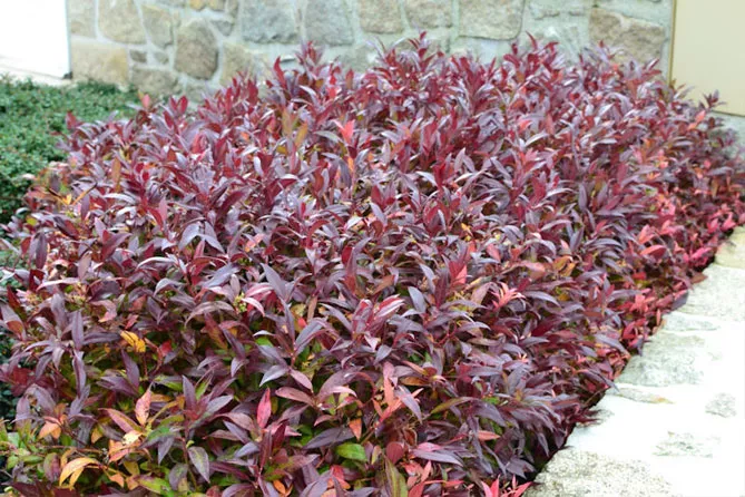 Навесні молоді пагони прикрашають рослину пурпурно-червоним відтінком, влітку листя темно-зелене.