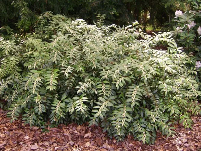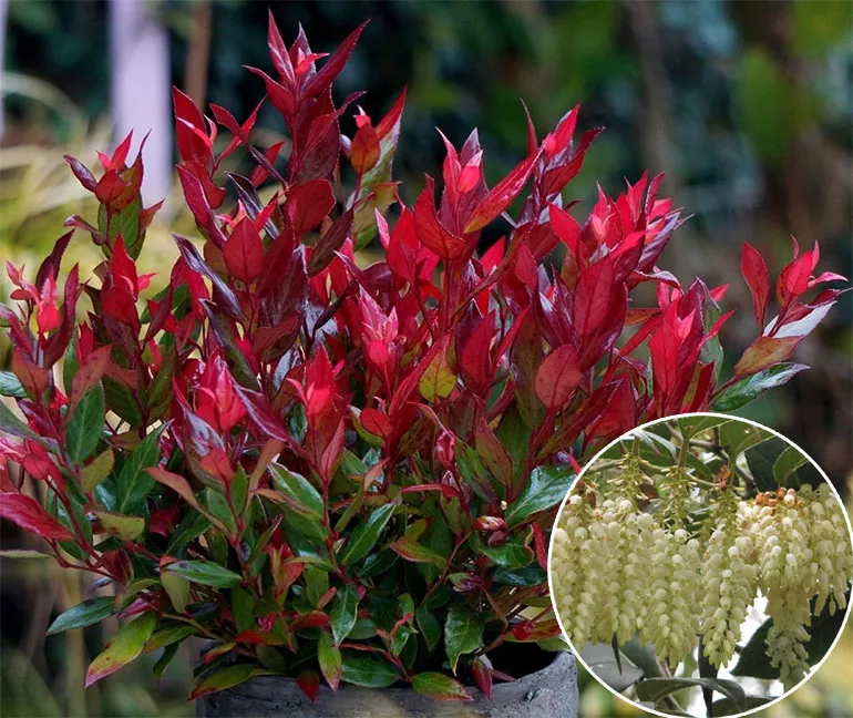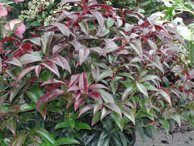 - Леукотое Дефонтена (лат. Leucothoe fontanesiana) – у багатьох різновидах («Скарлетта» Scarletta).
