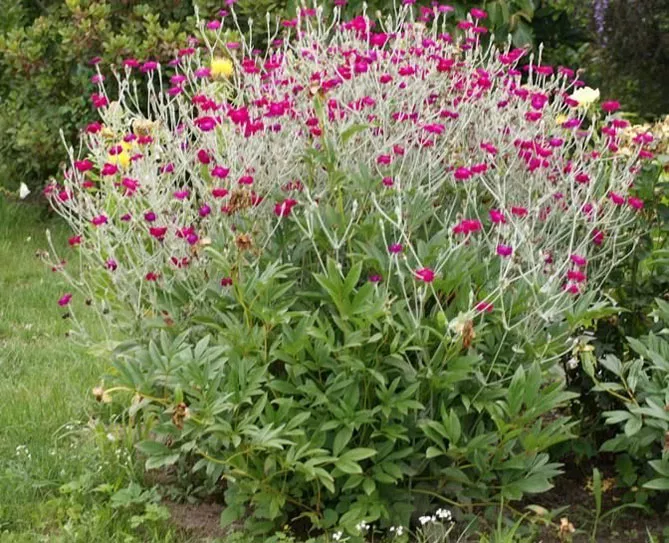 - Ліхніс вiскарія (Lychnis viscaria) з чарівними шаруватими, шелесткими квітками.