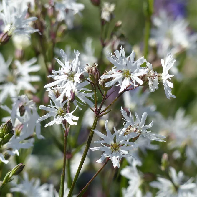 - «Альба» (L. coronaria Alba) – високий сорт (80 см), цвіте з червня по вересень витонченими білими квітками, відмінно підходить для сухих садів.
