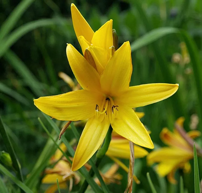 Низьких сортів найбільше. До цієї групи також належить відомий сорт лілейника Stella de Oro, що цвіте у червні – липні. Сорт дає жовті квіти інтенсивного відтінку. Стебло досягає висоти максимум 30-40 см.