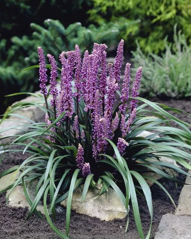 Типовий вид Ліріопе мускарі (лат. Liriope muscari) швидко утворює чудовий килим, завжди акуратний вздовж напівтінистої стежки, біля підніжжя живої огорожі чи під високими деревами. Період цвітіння: серпень-жовтень. Висота у дорослому стані – 30 см.