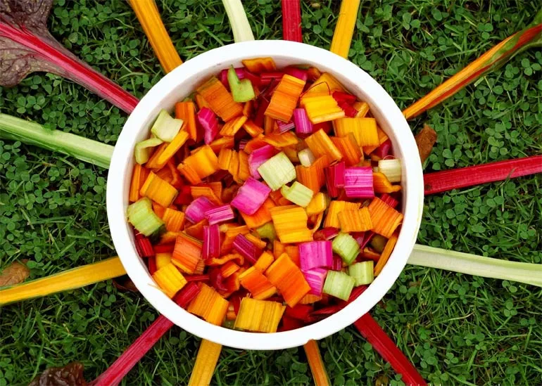 Вимийте відломані листя, відріжте зелену листову пластинку – залиште барвисті черешки. Розріжте стебло на кубики і варіть 10-15 хвилин у воді або на пару до м'якості. Відварні стебла можна додати в салати або зробити смачний суп. Смак мангольда здивує, він не схожий на звичайний червоний буряк! Існує безліч варіантів, що приготувати з мангольда – салати, супи, запіканки, коктейлі. Деякі рецепти представлені нижче.