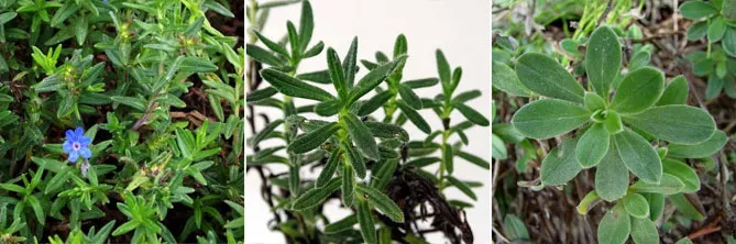 Фото. Листя літодори: Lithodora diffusa ‘Heavenly Blue’, Lithodora ‘Cambridge Blue’, Lithodora oleifolia
