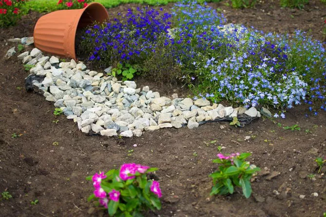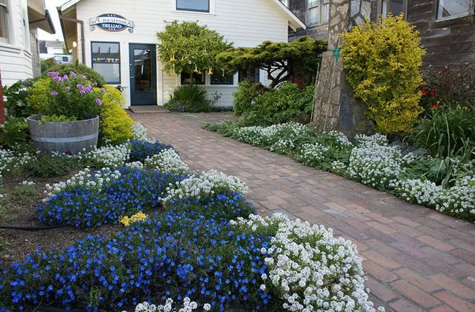 Скористайтеся перевагами білого цвітіння пісочниці гірської або ясколки. Можна посадити кілька невеликих тирличів, наприклад, тирлич безстеблий (Gentiana acaulis), який цінують за трубчасті квіти яскраво-синього кольору. За потреби додайте пучки трав, щоб створити ефект об'єму і руху.