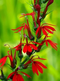 Лобелія блискуча (Lobelia fulgens) – має високі прямостоячі стебла, прикрашені довгими суцвіттями і квітами яскраво-червоного, алого кольору. Багаторічник досить високий – до 90 см заввишки. Висаджують другим рядом на рабатках. Цвіте в кінці літа, в серпні до осені. Як і пурпурна, вона вимагає укриття або перенесення в кімнату на зимівлю. Рослину садять на клумбах, берегах ставків.