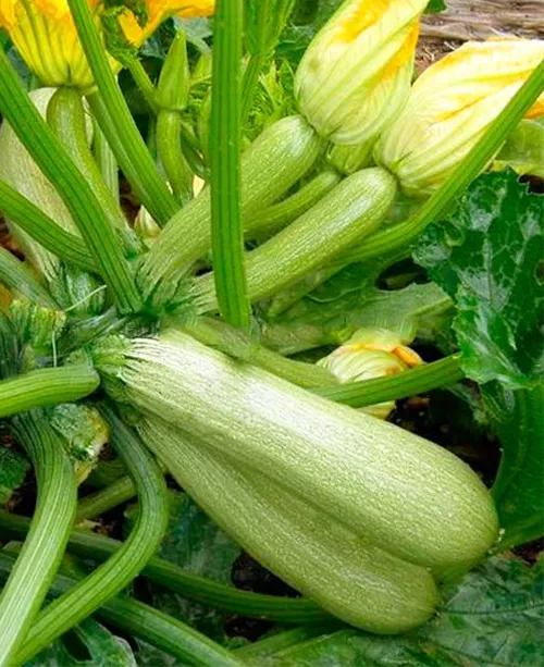 Це ранній гібрид з чудовим смаком вершкової м'якоті, що містить безліч вітамінів, мінеральних речовин. Покривна оболонка досить щільна, зеленого кольору. Зривати кабачки з куща слід, не чекаючи, поки вони стануть довшими за 20 см. Завдяки цьому відбудеться перерозподіл пожильних речовин у рослині на користь наростання зав'язей. Гібрид несприйнятливий до безлічі небезпечних хвороб культури. |