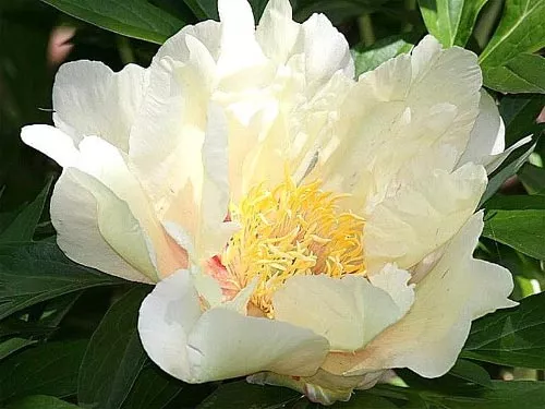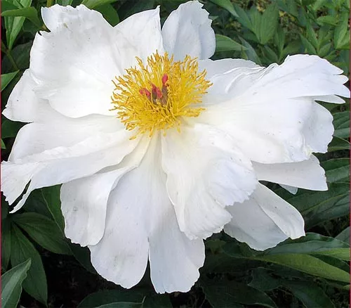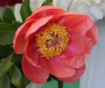 | А ля Мод | Ефектний білий піон з числа простих різновидів. Квітки великі, одношарові. На основному фоні видимо контрастують жовті тичинки. На одному квітконосі розміщується до 9 бутонів. Сорт стійкий до нестабільних погодних умов. | ![]() |