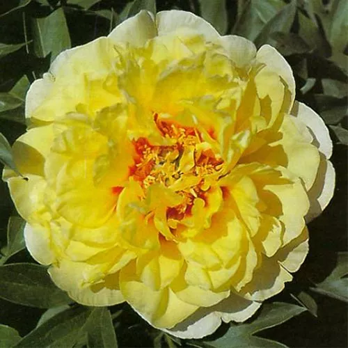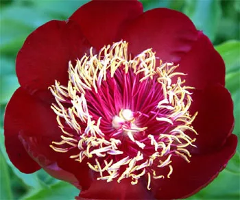 | Енн Беррі Казенс | Високорослі піони, що витягуються до метра заввишки. Купи напіврозлогі. Це червоні піони з рожевуватим відливом та жовтим тичининним помпоном посередині. Тип – напівмахровий. | ![]() |