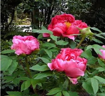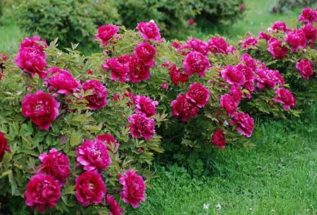 У більшості сортів деревовидних піонів бутони розкриваються раніше, ніж у трав'янистих. Однак цвітіння триває недовго – близько 3 тижнів. У зв'язку з уповільненим ростом, посадку та вирощування їх здійснюють за особливою технологією – шляхом щеплення живців на кореневище трав'янистих різновидів.