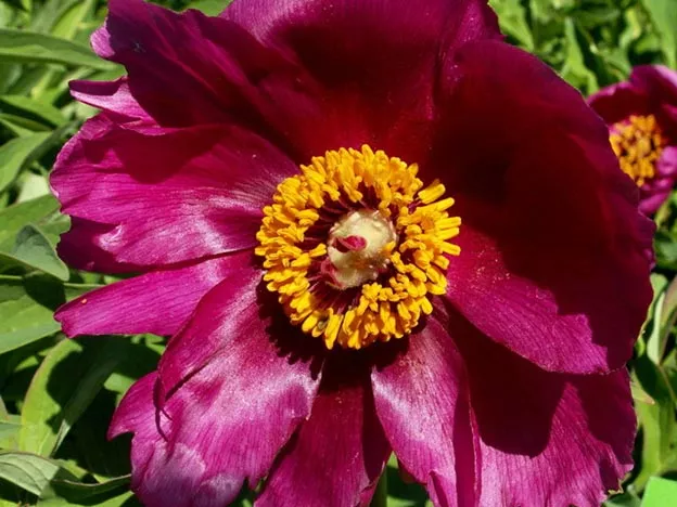 Піон Делавея – чагарник розміром до 1,5 м. Квітки сягають до 7 см у діаметрі та мають темний колір, іноді коричневий.