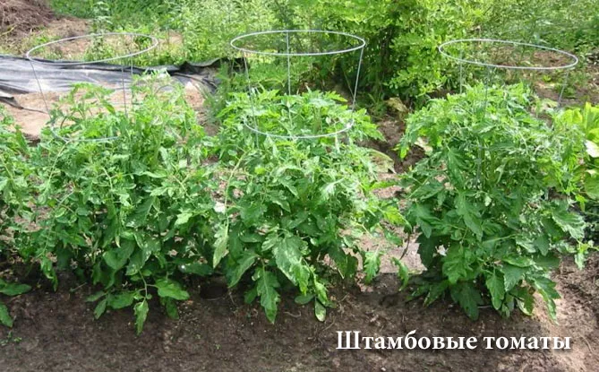 Кущові низькорослі помідори досягають висоти 40-50 см. Вони легко ростуть, не вимагають видалення бічних пагонів, але легше заражаються грибковими захворюваннями, дають дрібніші плоди. Їх садять на відстані 50×50 см.