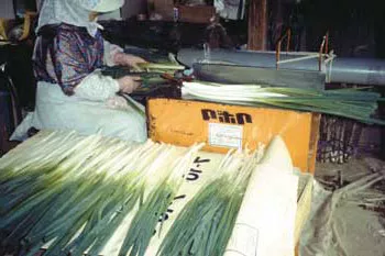 Як зрізати батун? Корисною частиною є цілі або обрізані рослини завдовжки близько 60 см, із залишеними 3-5 листочками, з відбіленими стеблами діаметром 1,5-2,5 см і довжиною понад 25 см. Рослини очищають вручну. В Японії їх очищають за допомогою спеціально сконструйованого пристрою, в якому сильна струя повітря відділяє зовнішнє листя.