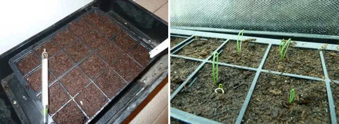 Деякі городники перед посадкою на розсаду цибулі Ексібішен насіння пророщують. Але це робить їх переміщення в загальну або індивідуальні ємності завданням досить складною і довгою.