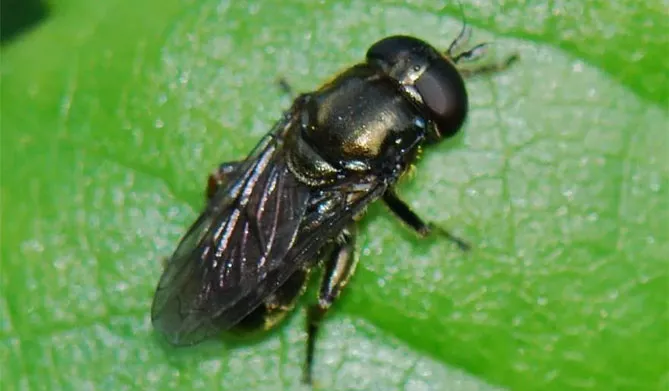 Ще один небезпечний шкідник цибулі ріпчастої, часнику. Муха завдовжки 5-6 мм, бронзового або зеленого кольору. Шкідник відкладає яйця білого кольору. Личинки, що виводяться, живляться соковитими частинами цибулин. При сильному зараженні личинок можна знайти біля основи листя. Пошкоджені цибулини висихають або загнивають.