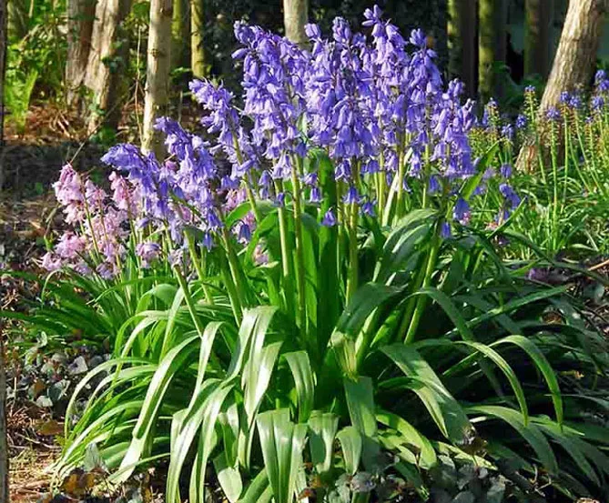 Пишна, морозостійка багаторічна рослина гіацинтоїдес іспанський з привабливими ароматними квітами виростає до 25-40 см. У нього гладкі блискучі листя. Висячі дзвоникуваті квітки інтенсивно-синього кольору з'являються у травні-червні. Чудово підходить для вирощування в альпінаріях, створення натуралістичних посадок під кронами дерев.