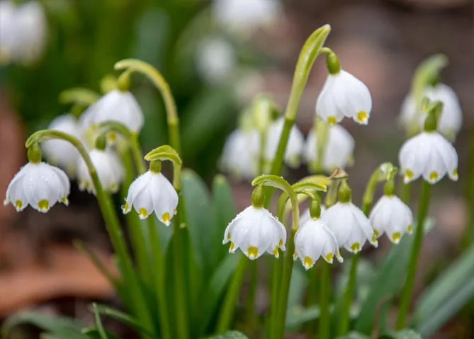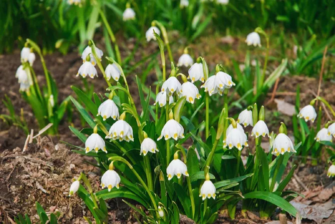 Цибулинна рослина з родини амарилісових білоцвіт весняний (Leucojum vernum) росте на вологих луках. Саджають його восени на глибину 8-10 см, на відстані 12 см.