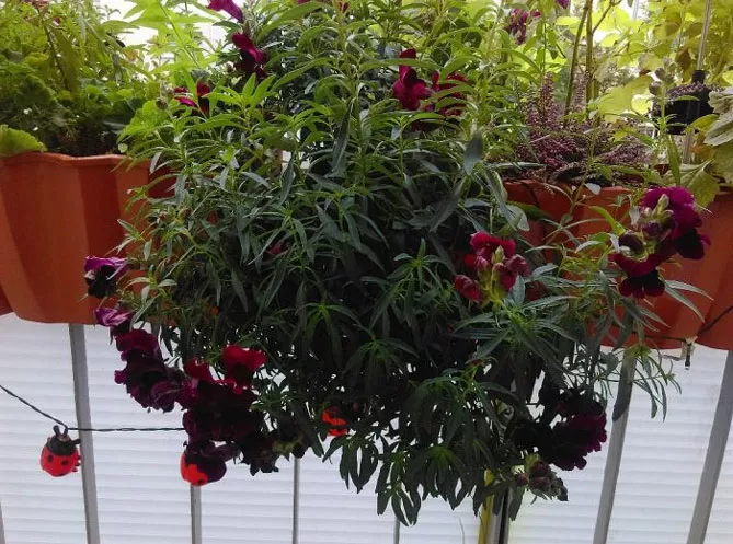 Красиво виглядає в горщиках на терасі або балконі ампельний львиний зів.