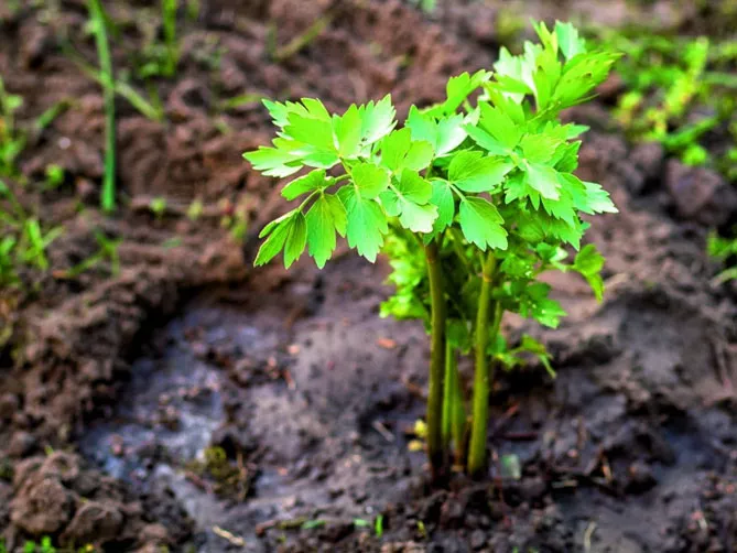 Відразу після посадки любистку потрібен догляд – саджанці потребують рясного поливу. На етапі росту частоту поливу можна трохи скоротити, але ніколи не допускати ситуації, коли земля повністю висохне. Бажано використовувати мульчування, яке перешкоджає випаровуванню води з грунту і дозволить скоротити кількість поливів.