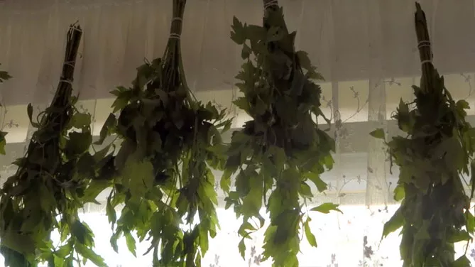 - Сушити потрібно в затіненій, провітрюваній кімнаті. Підійде затінений балкон, тераса, де трава може повільно висохнути. Листя повністю висохне через 2-3 тижні.